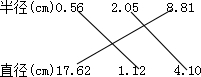 分析:根據(jù)直徑和半徑的含義:通過圓心,并且兩端都在圓上的線段叫做直徑;連接圓心和圓上任意一點的線段叫做半徑;由此可知:在同一個圓內(nèi),直徑的長度都是半徑長度的2倍,半徑的長度是直徑的一半;據(jù)此連線.