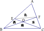 分析:首先,每塊的面積比就是修剪各塊所需要的時(shí)間比,連結(jié)EF,則把北面分成兩個(gè)部分,那么:S△EOF:S△FOC=S△EOB:S△BOC,即可求出S△EOF=8,即8分鐘;S△AEF:(S△EOF+S△FOC)=(S△EOF+S△AEF+S△BOE):(S△BOC+S△COF),即S△AEF:24=(S△AEF+18):36,因此S△AEF=36,因此S△AEF+S△EOF=36+8=44.即44分鐘.