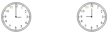 在下面兩個(gè)鐘面上畫出兩個(gè)直角。