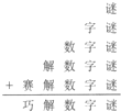 如圖中相同漢字代表相同數(shù)字,不同漢字代表不同數(shù)字.如果巧+解+數(shù)+字+謎=30,那么“數(shù)字謎”代表的三位數(shù)是多少?
