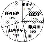 (1)踢毽子的人數(shù)比跳繩的人數(shù)少百分之幾?