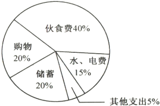 | 項目 | 伙食費 | 購物 | 水、電費 | 儲蓄 | 其他支出 |