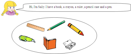 【題目】下面是sally所擁有的文具,請(qǐng)仿照例句把她的文具用英文表達(dá)出來(lái)。