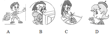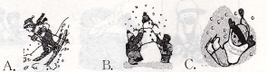 【題目】看圖,選出與圖片相符的句子,并將句子標(biāo)號(hào)寫(xiě)在題前括號(hào)內(nèi)。每小題1分。