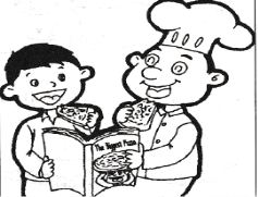 It was Saturday. Joe was doing his homework. He read a book—The Biggest Pizza. The book was about a famous cook named Mr. Smith. Joe had to write a book report(讀后感) about it. Joe wrote his book report very carefully, because his teacher said,“The best book report wins a special prize.”