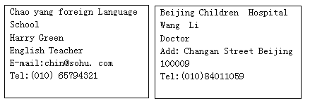 【題目】閱讀以下兩張名片,并判斷信息的正(“√”) 誤(X)。(共5分,每小題1分)