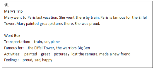 請你從Tom和Lucy中選擇一個人物, 將名字寫在答題卡相應位置,根據(jù)信息提示為他(她)寫一段游記。需要包括所到城市、交通工具、著名景物、事件和感受等信息。請在答題卡上直接作答。