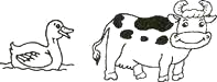 【4】Look! The cow is ______. The duck is ______. (big / small) ![]()