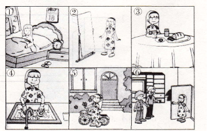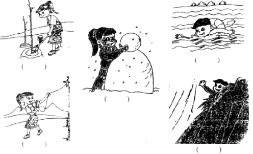 【題目】看圖讀短文。按圖片順序給話語編號,將序號填在括號里。(共5分,每小題1分)