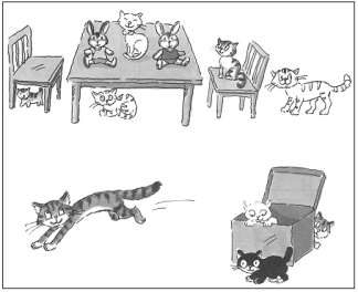 【題目】看圖,判斷后面的陳述是否與圖畫相符。若相符,在相應(yīng)的括號里寫“T”;反之,寫“F”。(6分)