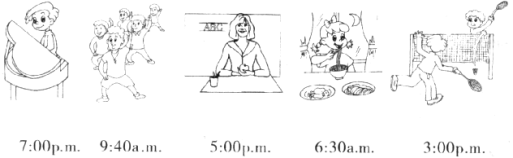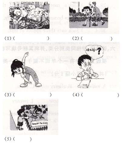 【題目】選擇與圖意相符的短語,將其標號填寫在括號內(nèi)。(共5分,每小題1分)