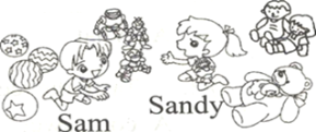 (2)Sandy has two toy bears. One is big and one is small. They're brown.