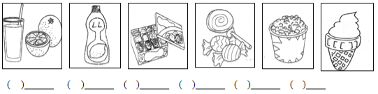 【題目】同學(xué)們,你們認(rèn)識下面各圖的食品吧!它們也是Mary, Tim, Ken, Betty, Mr. and Mrs. Brown喜歡吃的食品。請按錄音順序用1,2,3 …在圖下的括號里標(biāo)出朗讀順序并在橫線上寫出是誰愛吃的食品。)(念兩遍)(12%)