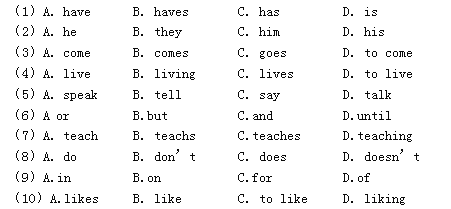 My father ______ a good friend in the factory (工廠). He is sixty. He is an old man. All of the children like him. We call ______ Uncle Sam. He _____ from England. He ______ in Sichuan. He can’t _______ Chinese. We teach(教)him Chinese _____he _____ us English. He _______ work ____ Sundays. He ______ making things. And he likes watching TV with his children at night.