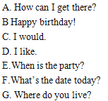 B:Thank you. We are going to have a birthday party at my home. Would you like to come?
