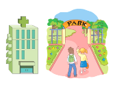 【1】The hospital is __________ the park. ![]()