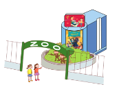【2】The zoo is __________ the cinema. ![]()