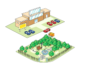 【3】The park is __________ the supermarket. ![]()