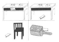 (1)The children are looking for a pencil case.(2)There is a pencil case in the desk.(3)A's pencil case is under the desk.(4)A's pencil case is next to the chair.