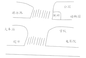 — It's behind the supermarket.(5)— Where is the zoo?