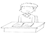 Look at this desk. It's Jim's desk. It's brown. Jim's book is on it. It's an English book. His pencil-box is in the desk. His pencil is in his pencil-box. But where's his pen? He can't find it.