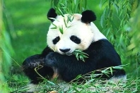 A.The dogis eating bamboo.B. The panda is eating bamboo.