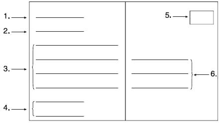 ⑴將字母標號填到相應(yīng)的位置;⑵⑶⑷⑸⑹根據(jù)明信片的內(nèi)容,選擇正確答案。