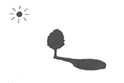 It is noon now. The sun is high in the sky. It is very hot. Look at the tree. The shadow is short.