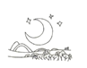 It is night now. The moon is high in the sky. There are some stars in the sky too. ![]()