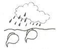 Little Water Drop: The sun shines and shines. I get hot. Then I go up to the sky. It's cool there. I am in a cloud.