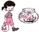 2. I put the goldfish in a glass jar. ( )