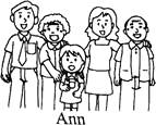 Hello, I'm Ann. This is my family. There are five people in my family. My grandparents are old. They are teachers. My father is tall. He has a white shirt. He is a fireman. He is not afraid of fire. He can help people. He likes his job. My mother is tall and beautiful. She has long hair. She has a yellow skirt. She is a nurse. I don't have any aunts. What about you?![]()