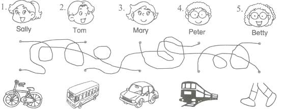 【題目】看圖,仿照例子寫(xiě)一寫(xiě)例子:—How do you come to school, Sally? —I come to school by car.![]()