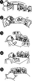 Mrs. Monkey, Mr. Cat and Miss Rabbit: We're not hungry now. Let's have some water and go home.![]()
