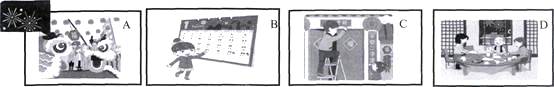 【題目】Chen Jie做了繪本,給外國的小朋友介紹中國年。讀繪本,完成相應(yīng)的任務(wù)。![]()