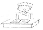 Look at this desk. It's Jim's desk. It's brown. Jim's book is on it. It's an English book. His pencil-box is in the desk. His pencil is in his pencil-box. But where's his pen? He can't find it.![]()