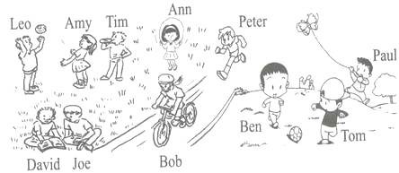 Look at these children. They are playing in the park. They are very happy. Look at Tim. He is drinking water. ……