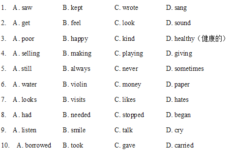 Mozart took over(接過來) the violin from the old man, and 8 to play. What wonderful music he played! All the people stopped to 9 to the music, and soon the hat was full of money.