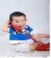 He is (playing the drums / playing the erhu).
