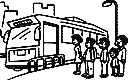 Then we will wait for the school bus at the bus stop. We stand in a line and we don't stand too close to the street.