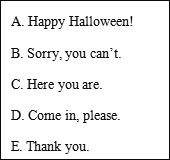 【題目】從方框中選擇正確的句子完成對(duì)話,將代表該答案的字母寫在橫線上。