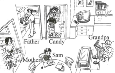 【題目】寫作題,下圖是Candy和她的家人,他們分別在什么地方?他們正在做什么呢?