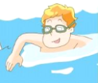 B. 他正在游泳。