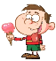 — He is eating ice cream.