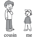 4. I'm 1. 5 metres. My cousin is ________than ________. ![]()