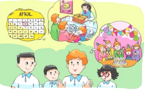 Mike: It's __________ ________ __________ _________ __________. We always have a party at home. Helen, Tim and I go to __________ __________ ___________ __________ in the morning. Then, my friends ________ in the afternoon. We _________the birthday cake together and _________ _________ _________. We have a lot of fun!