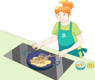 B: _________ __________ in the kitchen.