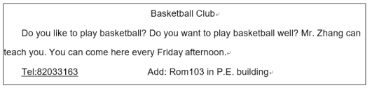 【2】Tim joins the Basketball Club. When does he go to the club? ( )