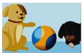 2. Look! The ball is ______ the two dogs. ![]()
