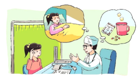 Su Hai has a _________ and a __________.She should _________ _________ __________ at home.She should _________ some medicine and drink some _________ __________ too.
